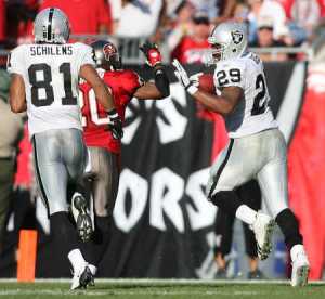 Their secondary is still questionable. They have the best corner in the league in Asomugha. I get it that everyone and their mother thinks Revis is HANDS DOWN the best corner, but I’m standing by my statement. It’s truly impossible to really compare CB’s in this league. You’re either one of the elite or not, but here’s a telling stat of how much opposing teams respect Nnamdi Asomugha compared to Revis. In 2009, teams targeted Revis’s man 111 times, and only threw to Nnamdi’s receiver 27 times. The Raiders have said they are going to let Asomugha roam the field a little more instead of keeping him on one side. This should allow him to follow their best receiver all game, and also open him up on the blitz schemes. He’s a VERY good open field tackler. He doesn’t have that Neon Deion yipes when a collision is coming his way.
