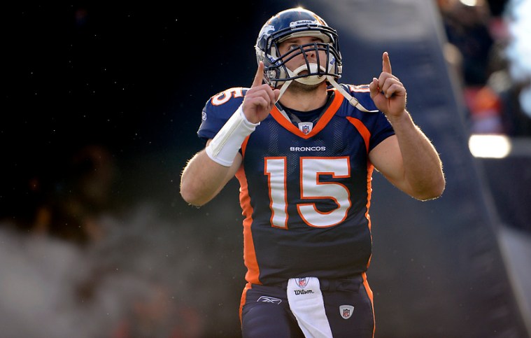 Denver Broncos rookie quarterback Tim Tebow is the last to take the field against the Houston Texans Sunday December 26, 2010 at Invesco Field at Mile High. Photo by Joe Amon, The Denver Post
