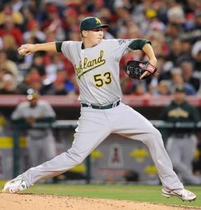 I still haven’t given up on the A’s making a run at the AL West, especially when they’re opening up a three game series against a last place team who just fired their manager, and the team they’re chasing is about to run a gauntlet of the top teams in the AL East. But regardless of how that ends up panning out, tonight is an exciting occasion because it will be the major league debut of Chris Carter. You may remember Carter as the player the White Sox traded for Carlos Quentin. Or better yet, you may remember him as one of the 14 players the A’s acquired for Dan Haren. Now that Carlos Gonzalez is lighting up the NL, Carter remains as the most highly touted prospect in that deal. Brett Anderson has already established himself as a legitimate big league starter, but Carter is the one who has the most upside.